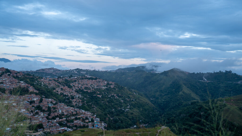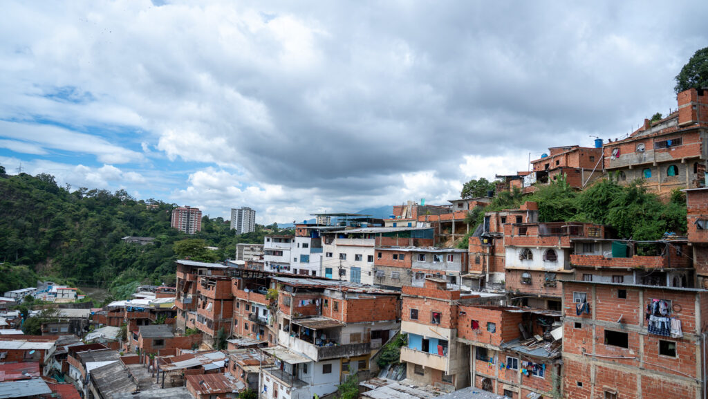 Vamos rumbo a Petare, uno de los barrios más grandes de Venezuela, y de América Latina, ubicado en el estado Miranda. Vamos en metro, mi primera impresión es de emoción al darme cuenta de que tiene aire acondicionado, a diferencia del de Ciudad de México. Las casas de ladrillo parecen apilarse sobre los cerros. Cobijas con imágenes de tigre cuelgan en los tendederos, en algunas ventanas se distinguen rejas. Unos cuantos árboles se abren paso entre el asfalto. Vamos subiendo en moto y los conductores son un tanto temerarios en las curvas, y en general. Mi cuerpo se siente un poco tenso en el trayecto, el compañero se da cuenta y me dice que me relaje, así que confío.